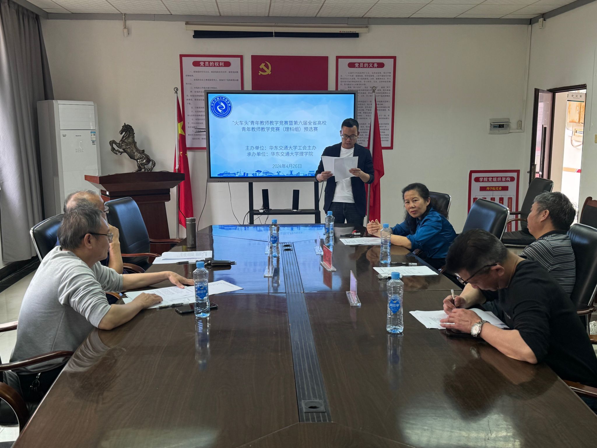 为深入学习贯彻习近平新时代中国特色社会主义思想和党的二十大精神威廉希尔williamhill官网于4月26日隆重举行了“火车头”青年教师教学竞赛暨第六届全省高校青年教师教学竞赛(理科组)预选赛及“理苑红基石”青年教师教学竞赛。此次竞赛旨在进一步加强高校青年教师队伍建设,助力高等教育高质量发展,激发广大青年教师更新教育理念和掌握现代教学方法的热情,提升教师的教学能力,大力弘扬劳模精神、劳动精神和工匠精神。此次竞赛由威廉希尔足球官网工会主办,威廉希尔williamhill官网承办。来自威廉希尔williamhill官网和材料科学与工程学院的七位青年教师参与了此次比赛的角逐,展现了新时代教师们的教学才华和创新精神。此次竞赛由威廉希尔足球官网 教学评估中心主任、副处长汪琳媛、材料科学与工程学院章家立教授、威廉希尔williamhill官网刘二根教授(江西省金牌教授)、涂晓斌教授(江西省金牌教授)、任才贵副教授(校天佑优秀主讲)担任评委专家。